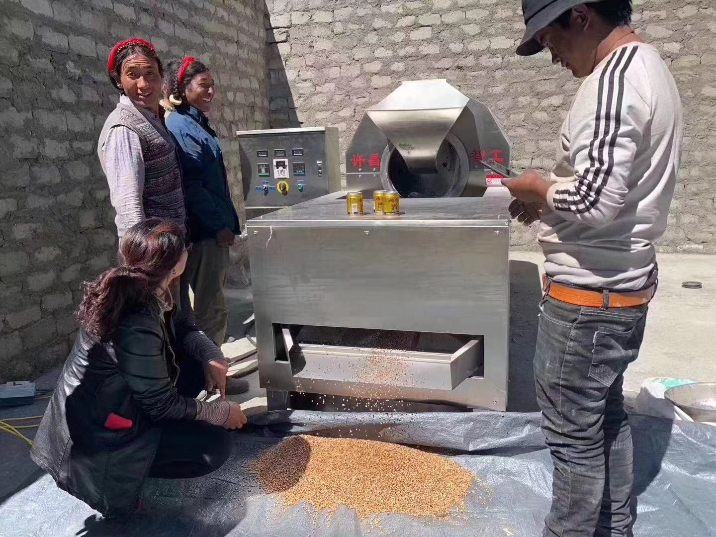 西藏电磁炒青稞机安装调试。